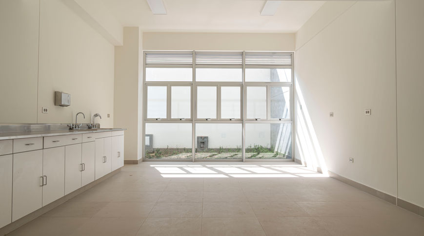 14 laboratorios, 12 aulas, 18 espacios administrativos, 21 salas especializadas y 9 espacios comunes.